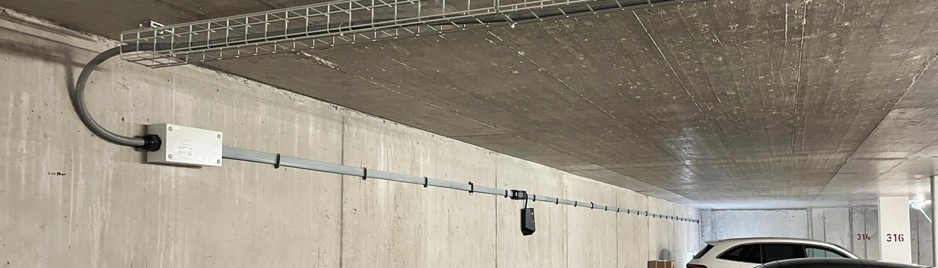- Vorbereitung der gesamten Tiefgarage mit rund 250 m Flachbandkabel